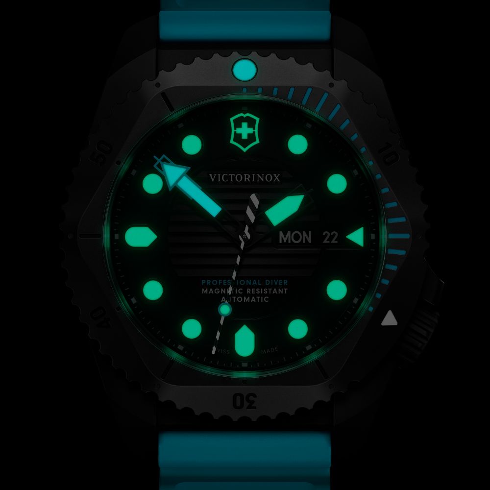 Low-light visibility is an important part of the Victorinox watchmaking approach, which is why the brand uses Swiss Super-LumiNova®
